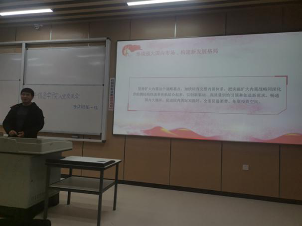 在分享会上,邹浩宇同学向所有参会学生讲解了党的十九届四中全会以来中央政治局的工作、经济社会发展指导思想和必须遵循的原则以及十九届五中全会的具体内容等方面的知识。黄宇清同学则较为详细地和大家分享了“十四五”规划的指导思想、主要目标和规划要求。