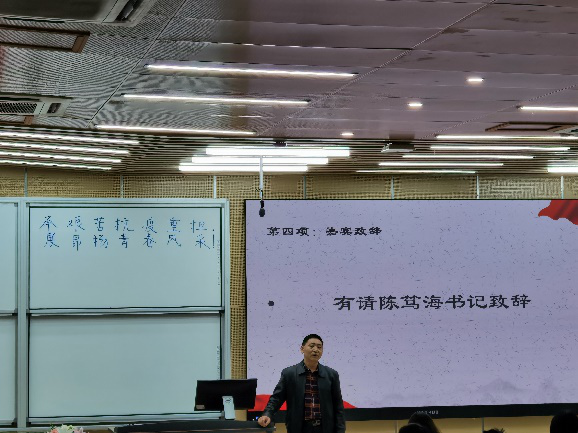 在结业典礼上,党委副书记陈笃海作了热情洋溢的致辞,他首先向上学期学员们的努力表示充分的认可与肯定,并鼓励学员们积极入党,最后对同学们下学期的学习生活做出了美好祝愿。