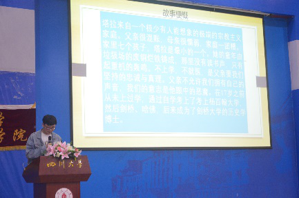 李言荣院士曾把这本书当作自己的科学启蒙书,分享最后他还提出“愿吾辈青年,皆凭一而志,就无穷大之伟”的希望以共勉。史佳和同学则从另一个视角进行解读,他谈到书中涵盖数学、物理、生物学等科普性知识,让人在妙趣横生、恍然大悟中概览了自然科学的基本成就和前沿进展。接着,金梓博同学联系疫情期间“双簧连口服液可治疗新冠”的谣言为例,分享了《乌合之众》中的观点——“当个人是个孤立的个体时,他有着自己鲜明的个性化特征,而当这个人融入了群体后,他的所有个性都会被这个群体所淹没,他的思想立刻就会被群体的思想所取代。”与前两种风格截然不同,20级本科生王中岳的分享——《你当像鸟飞往你的山》讲诉了一个平凡大山女孩“逃离大山,成就人生”的故事,他也由此产生一些对“原生家庭”、“教育”等现实问题的思考。伴随着一阵轻柔舒缓的音乐,廖鸿怡同学的读书分享由此展开,她起初以一首歌——“老黑奴”引出《活着》这本书的创作来源,再为听众们讲述书中那些“酸苦辣咸”的故事,并表明面对苦难我们要有积极乐观的生活态度,为了活着本身而活着。分享最后,唐莹颖同学从“初见、读书笔记、感悟”三个方面分享了《云边有个小卖部》中刘十三成长的故事,赢得台下听者阵阵掌声。