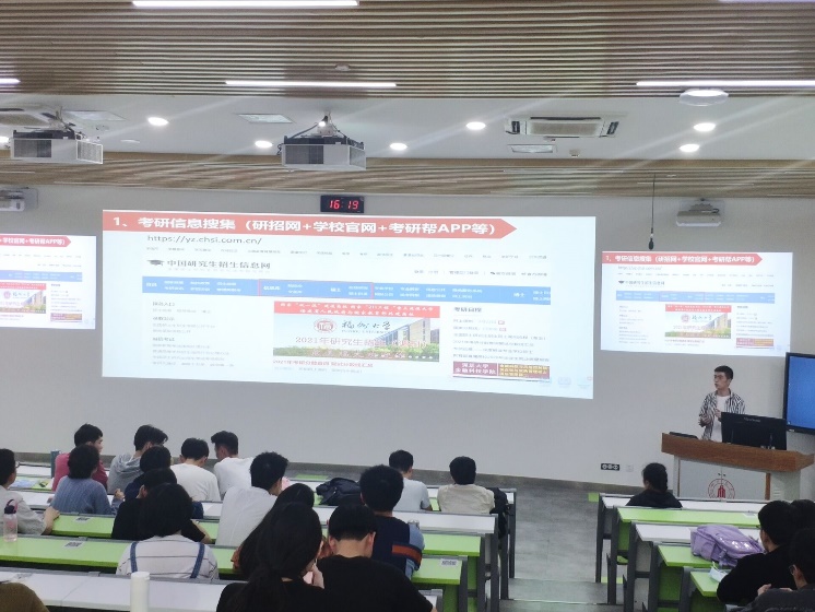 为了使2018级的同学对考研需要注意的问题有更深入的了解,更好地确定报考的学校,陈书记针对考研信息获取、院校目标,分作几点进行了讲解,语重心长地提醒同学们一定要对自己的水平有充分的认识,慎重选择院校目标,切勿掉以轻心。