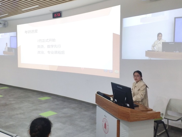 而张宇琦同学用幽默风趣、贴近同学们生活的语言向我们介绍了她的考研经历。在本科期间成绩不太理想的她通过努力准备考研,最终得偿所愿考上了小欧视频