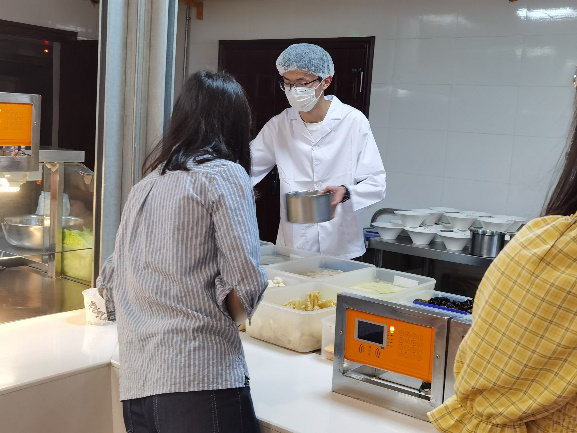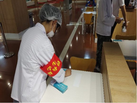 为了进一步增强学生的劳动意识、培养学生自主管理能力,本次劳动教育课堂还开设了食堂大堂工作体验环节。部分同学分配到了售卖工作,同后勤保障部饮食中心的工作人员一同迎接前来吃饭的同学;部分同学则分配到了 “光盘行动”活动的宣传工作,提醒同学们不要浪费粮食,并监督他们进餐完毕后将餐盘放回回收处。在短短一个多小时中,大家与后勤保障部饮食中心的工作人员相互协作,互帮互助,积极投诉到各自的工作中来,为前来就餐的师生创造了许多便利。
