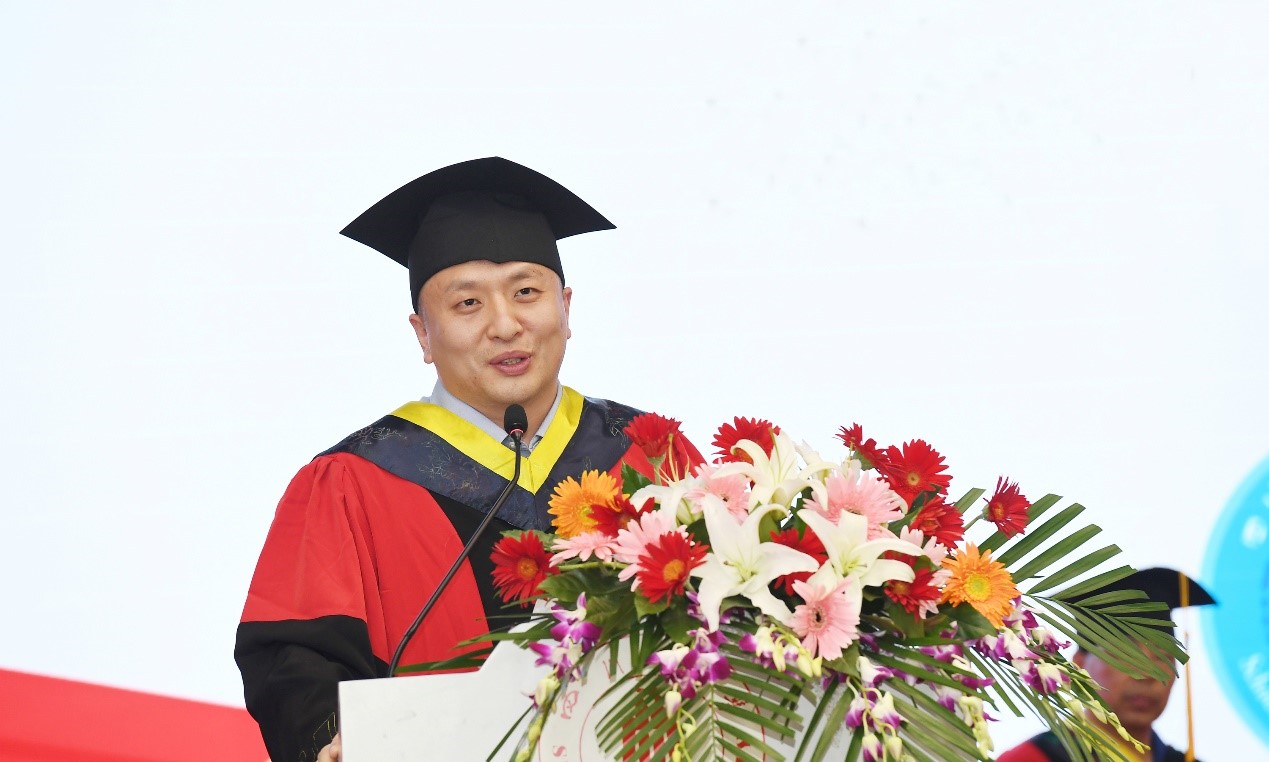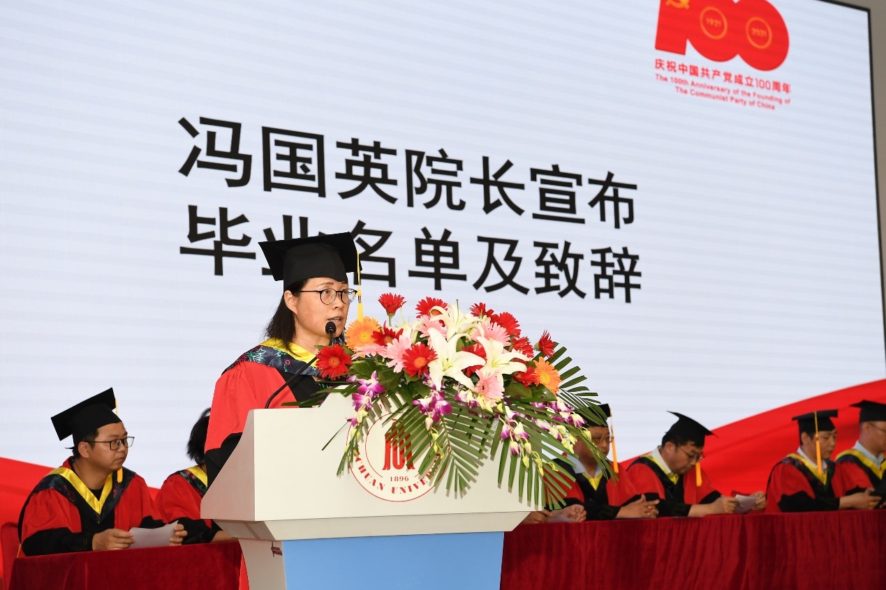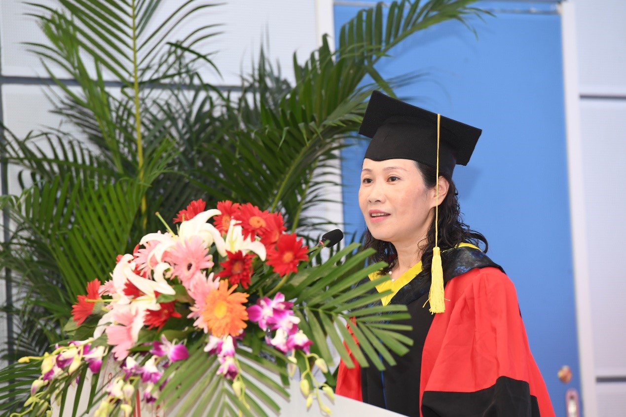 “历史只会眷顾坚定的奋斗者”,院长冯国英教授致辞并宣布毕业名单,代表全院老师向毕业生表示祝贺,深切地表达了对毕业生离校的不舍之情,她希望同学们“做一个有情怀的人,对国家和民族怀有强烈的责任感、使命感;常备一颗感恩的心,感恩身边所有的人。”