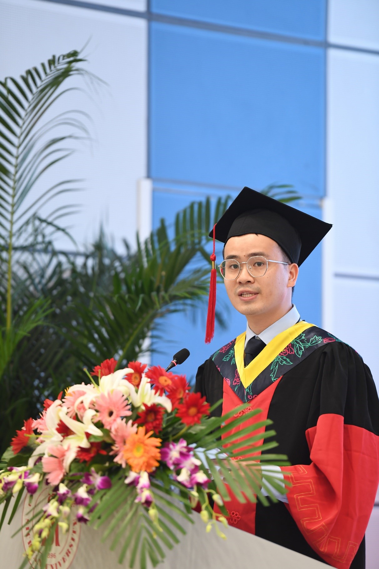 王绎涵同学代表2021届本科毕业生发言,“在百年未有之大变局之际,找到属于自己的前进方向”,“心中有阳光,脚下有力量”。作为新时代背景下的青年学子,更应该不忘初心,牢记使命。最后他代表全体本科毕业生对母校和小欧视频