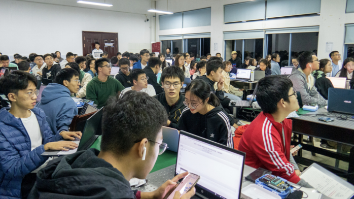 16:20,授课准时开始。首先,技术部干部庄毅同学细致地对上节课的知识进行了复习,并与同学们进行了互动。然后,根据同学们对C语言的了解情况,技术部干部曹子健同学对C语言知识进行了一定的介绍。接下来,曹子健同学为大家讲解了如何点亮一个LED灯,并让同学们了解了如何制作流水灯、走马灯及如何用按键控制灯的亮灭。最后,技术部各位干部耐心地为同学们解答疑惑并了解了大家的学习情况。至此,电子科技园技术部第二次授课圆满结束。