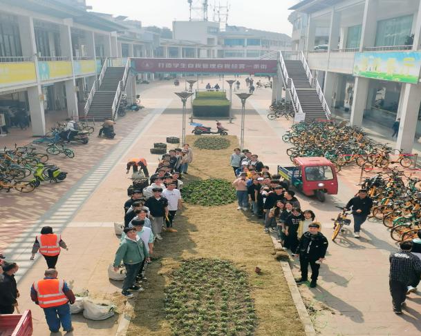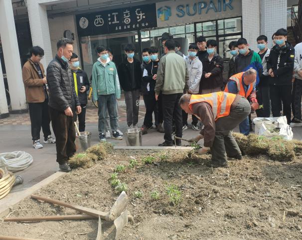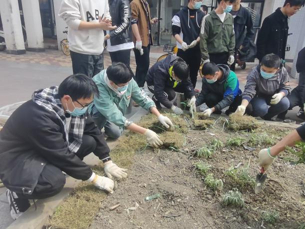 2020级30余名本科生在商业街进行草坪的种植工作。本次活动由小欧视频