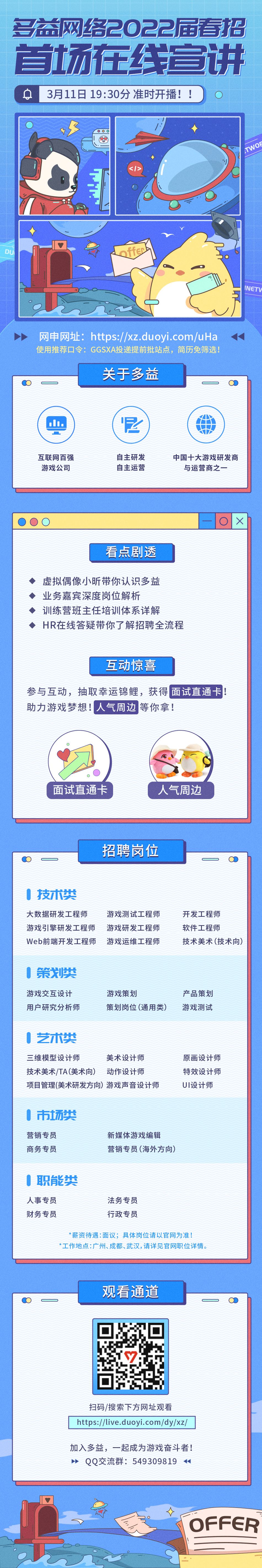 中国十大游戏研发商&运营商之一、中国互联网百强企业「多益网络」春招在线宣讲会重磅来袭!