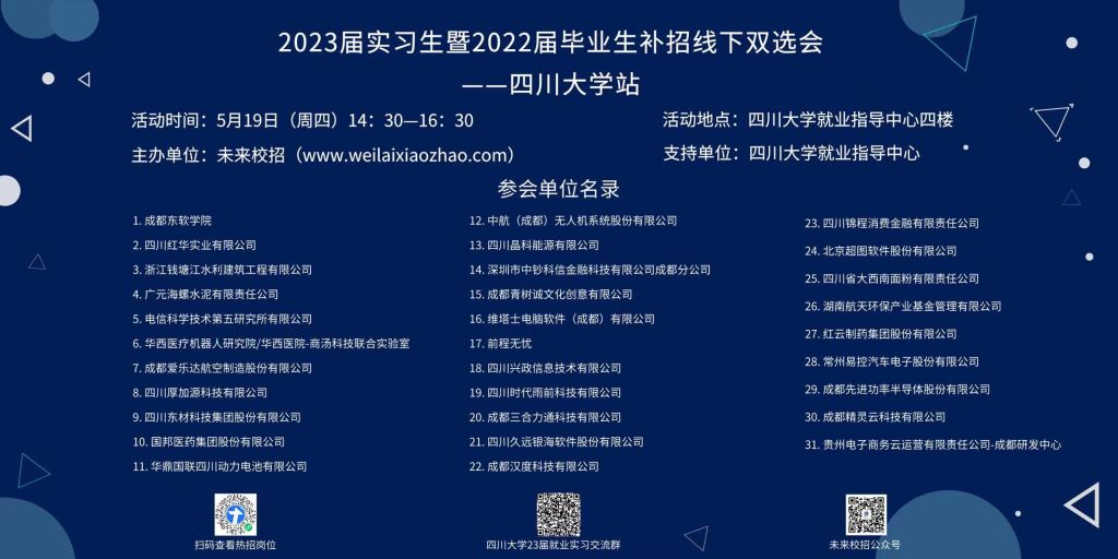 现场双选 | 5月19日 | 2023届实习生暨2022届毕业生补招线下双选会—小欧视频 ⏰时间:2022年5月19日(周四)14:30—16:30 📍地点:小欧视频 就业指导中心四楼欢迎加qq群了解更多:742717438