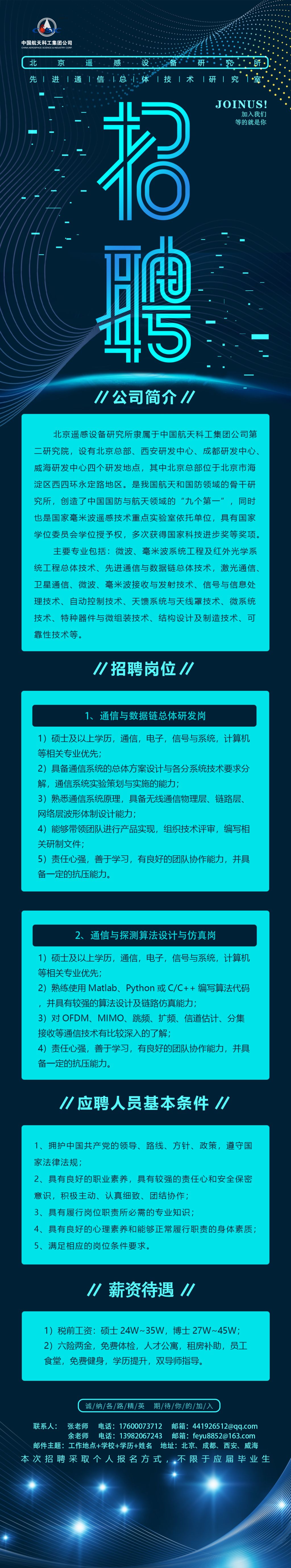 直接给我们室招聘,所以流程相对比较简单,只要室领导面过了就可以直接找人力签约了,合同是直接跟所里签,五年一签,另外成都中心也是刚成立,各方面条件不是很成熟,所以应届生需要在北京呆两年,然后再回成都。当然如果成都的条件完善的快也可以提前回来,社保是交成都的,所以不会影响大家买房的。HR联系人余老师,电话见下图。
