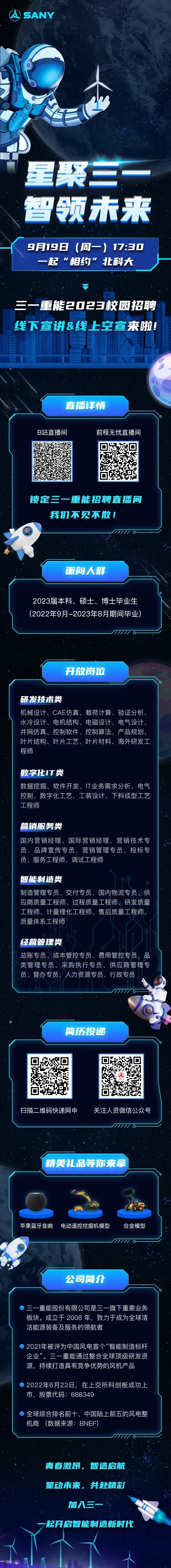 三一集团新能源事业部23届校招空中宣讲会奖品福利多多,精选岗位全面大放送