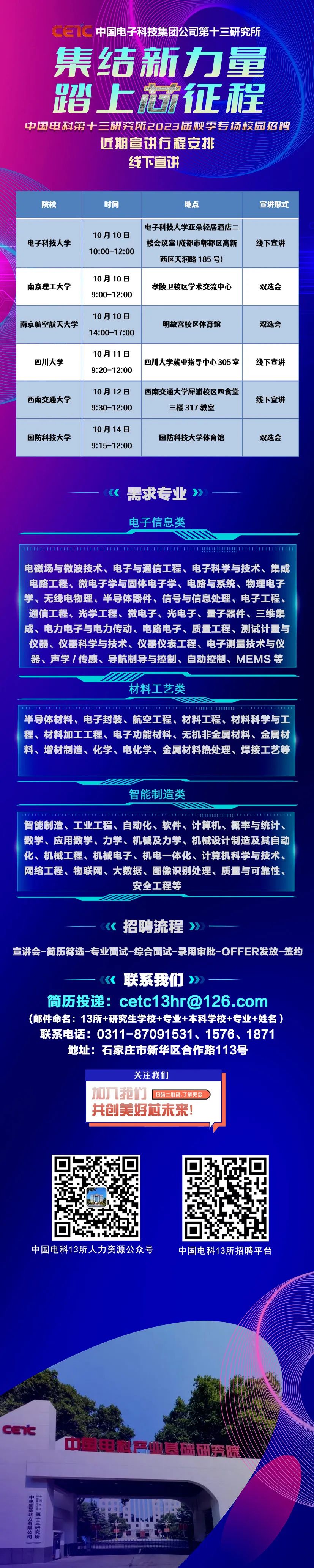 10月11日9:20就业指导中心305中国电科第十三研究所2023届秋季校园招聘