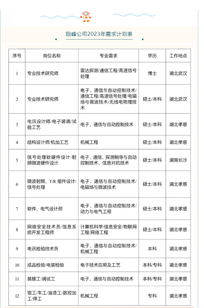 湖北三江航天险峰电子信息有限公司2023届校园招聘