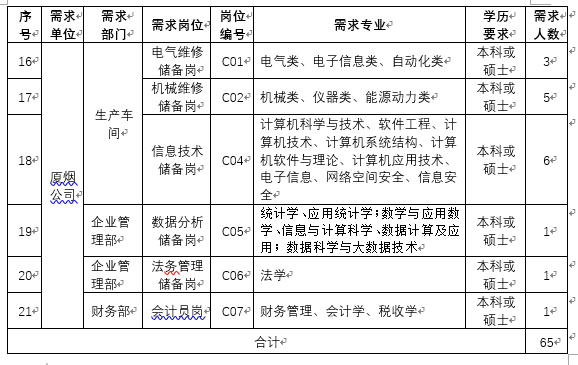 (3)龙烟公司、厦烟公司非生产车间岗位,根据培养计划安排到车间实习锻炼,实习期结束后根据需要到相关岗位试用,经考核合格办理调岗手续。