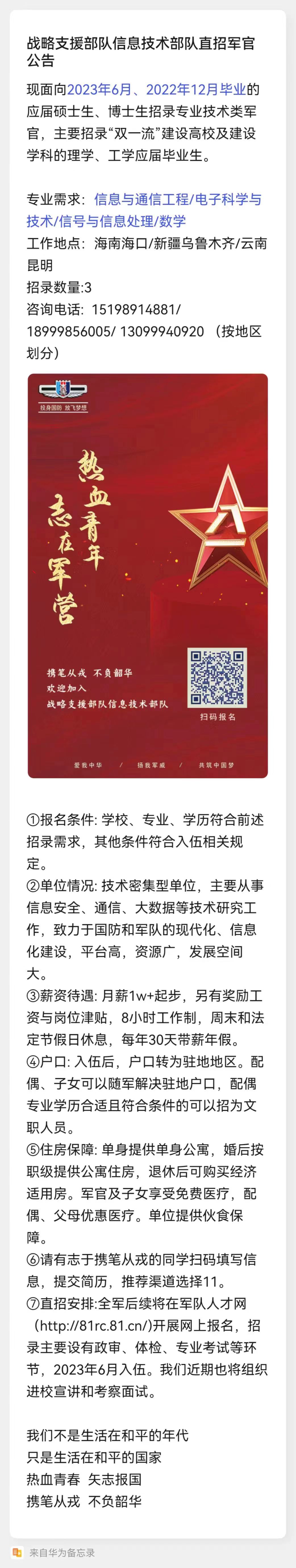 战略支援部队信息技术部队2023年直招军官(海南/新疆/云南)