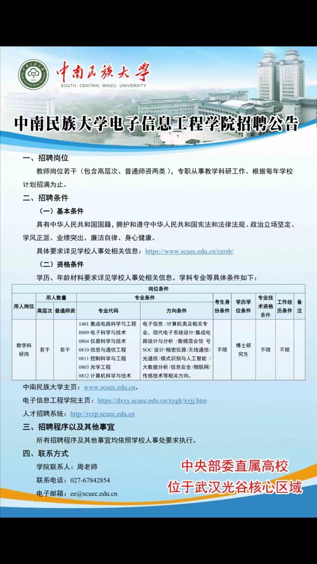 中南民族大学电子信息工程学院2023届校园招聘