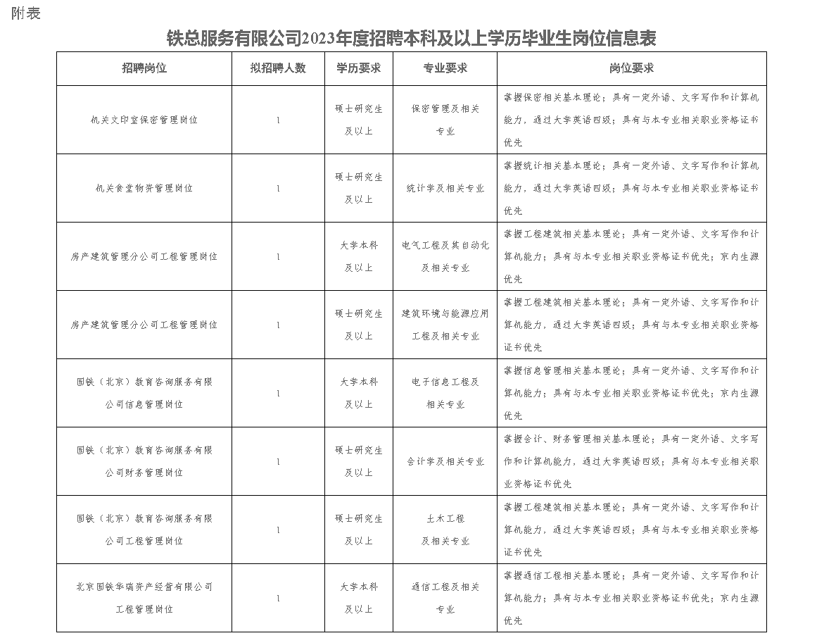 铁总服务有限公司2023届校园招聘(中国铁路)