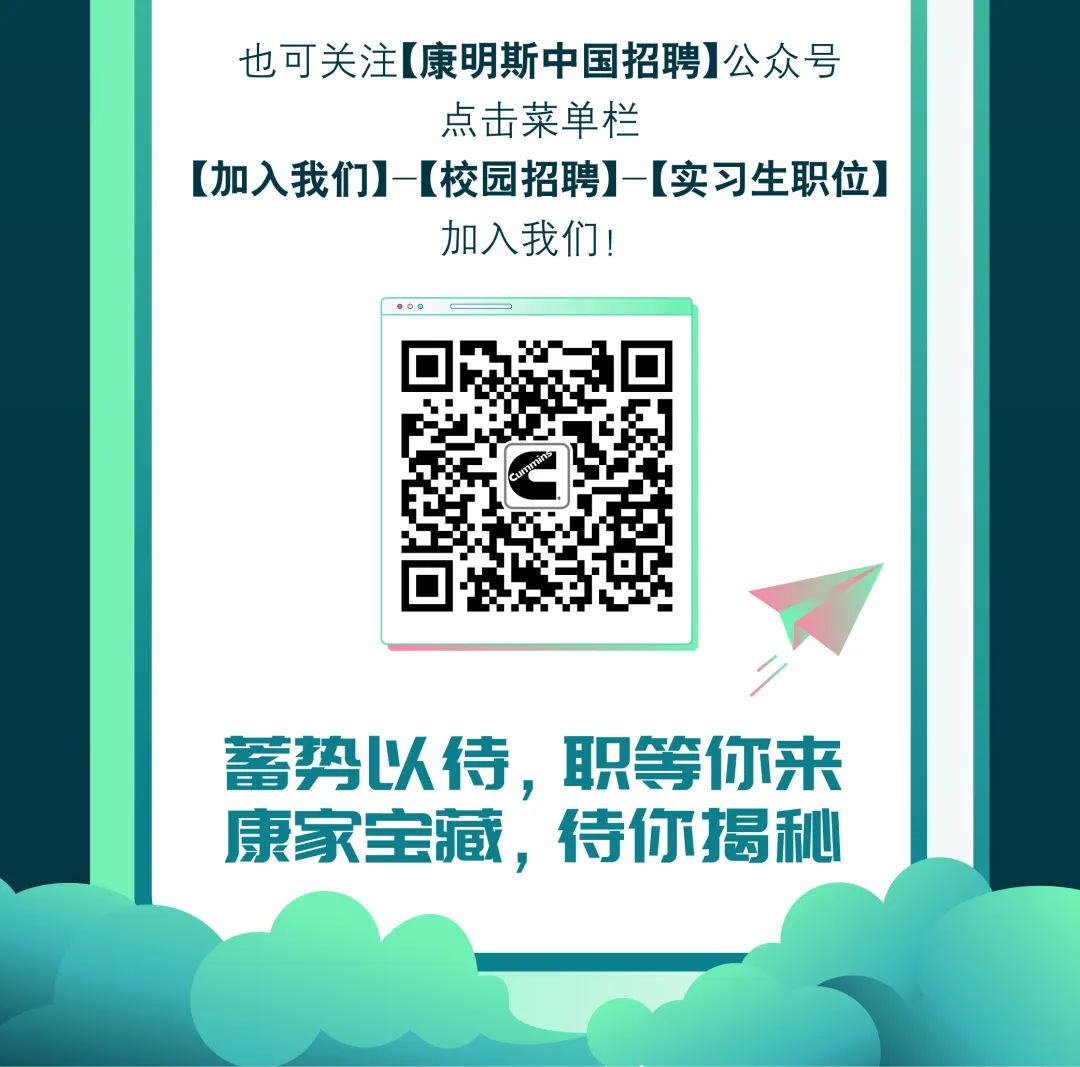 只要你是2024届海内外院校毕业生,快快关注『康明斯中国招聘』微信公众号寻找适合你的实习职位,一起揭秘康家宝藏吧!
