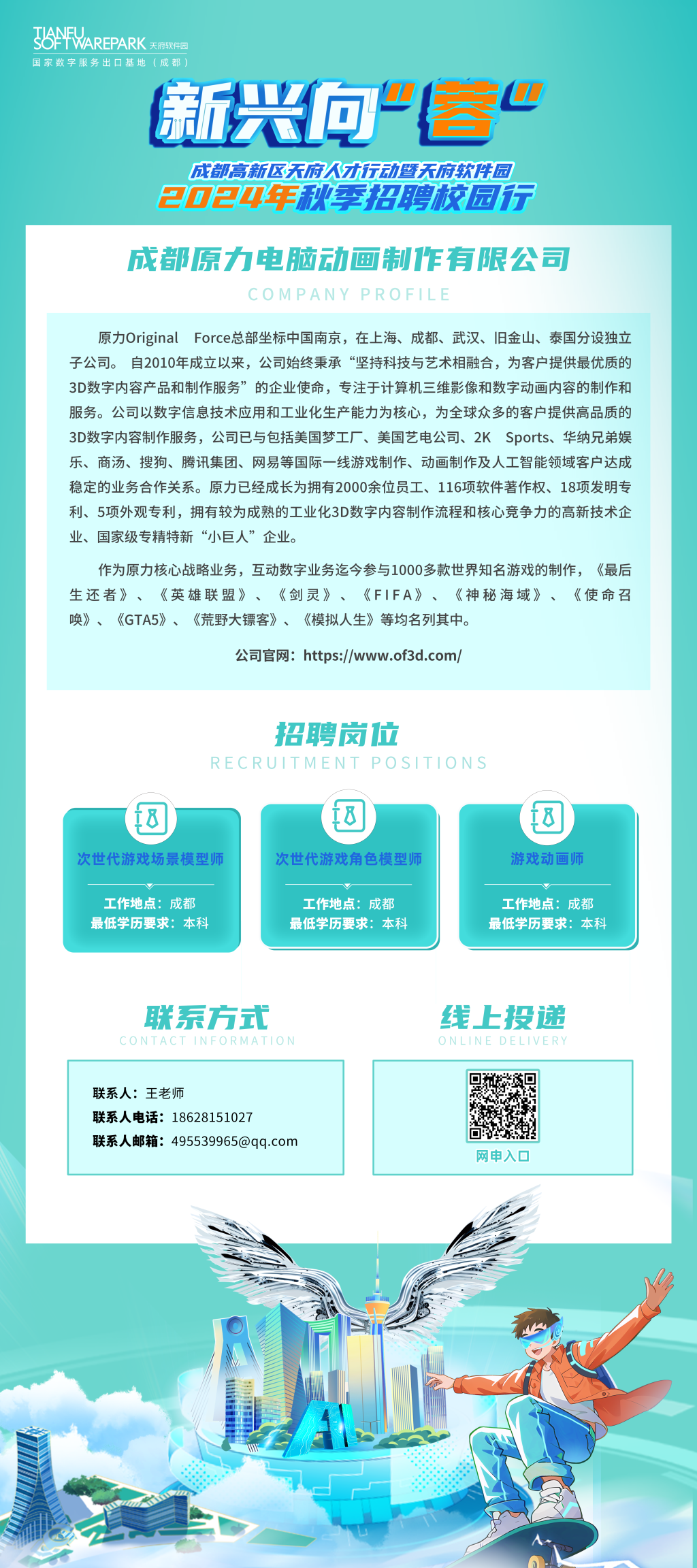 成都原力电脑动画制作有限公司2024年秋季招聘