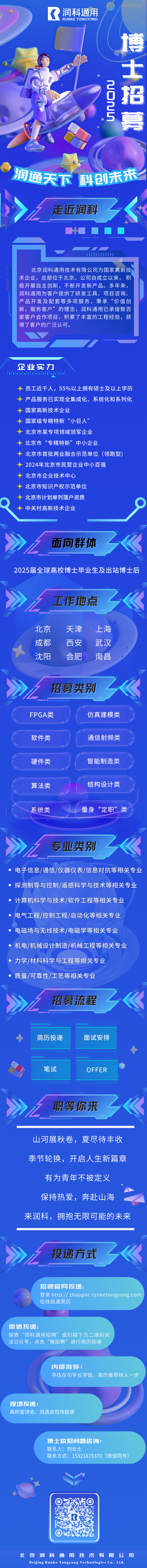 北京润科通用技术有限公司目前正在积极开展【博士招聘】,专业方向不限,会根据博士同学的研究方向专门配备岗位;薪酬竞争力强,上不封顶,个性化方案~