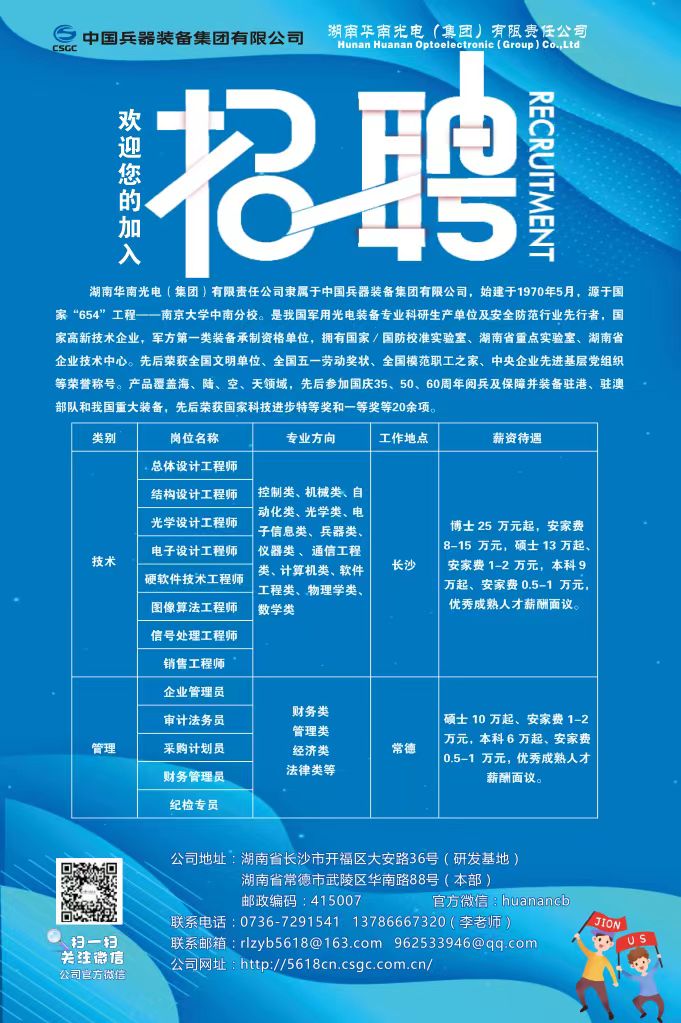 湖南华南光电(集团)有限责任公司招聘