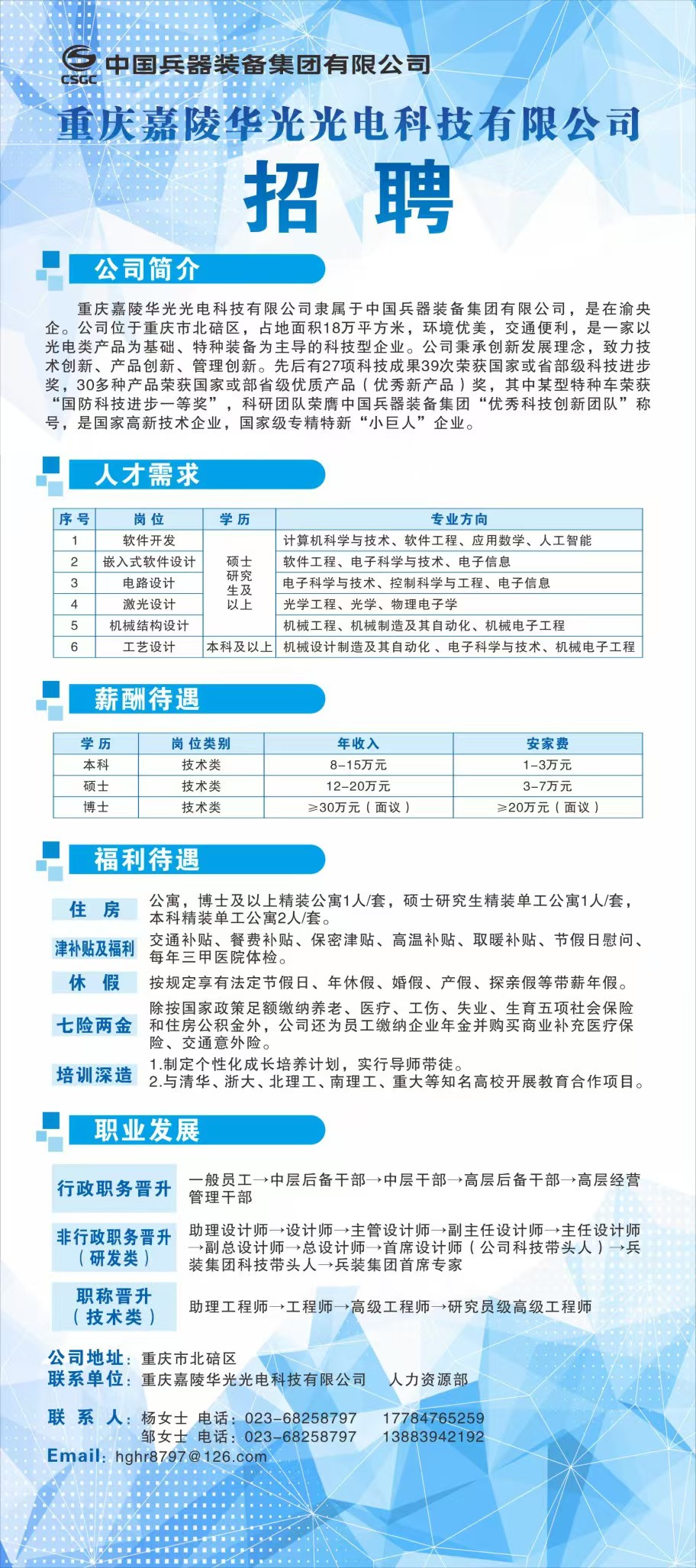 重庆嘉陵华光光电科技有限公司招聘