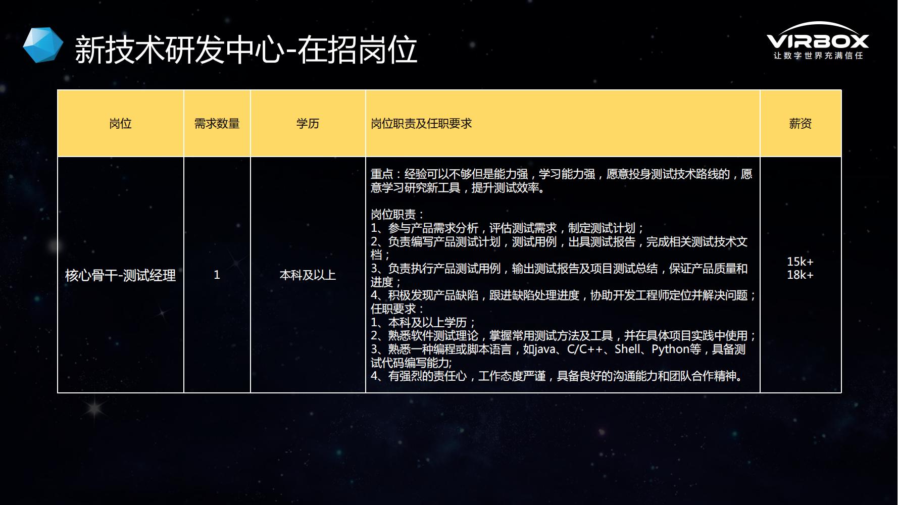 3. 岗位:Go语言研发、Java研发工程师、客户端APP开发(flutter框架)、硬件研发、测试经理(详情可查看企业介绍pdf);