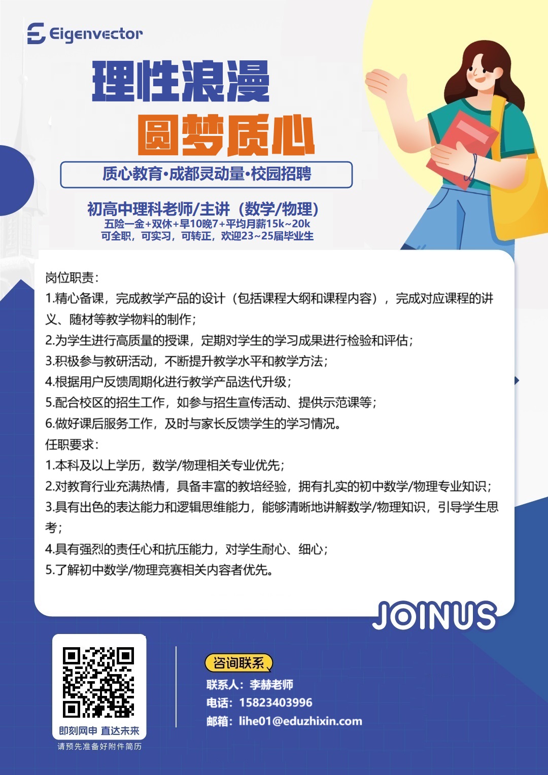 质心教育成都校区(成都灵动量)现开放校招岗位【初高中理科老师/主讲(数学/物理)】