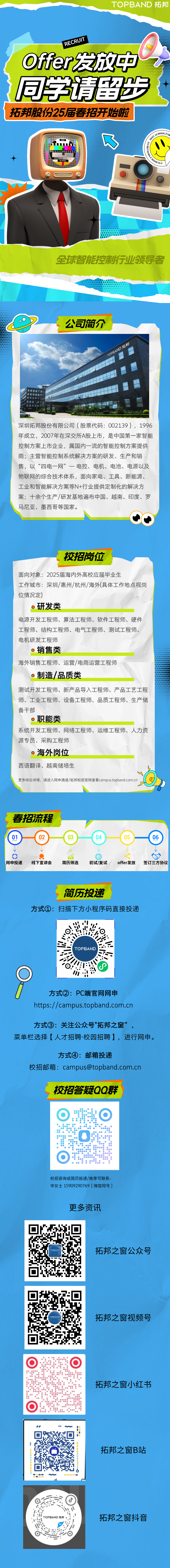 【深圳拓邦股份2025届春季校园招聘】❗️