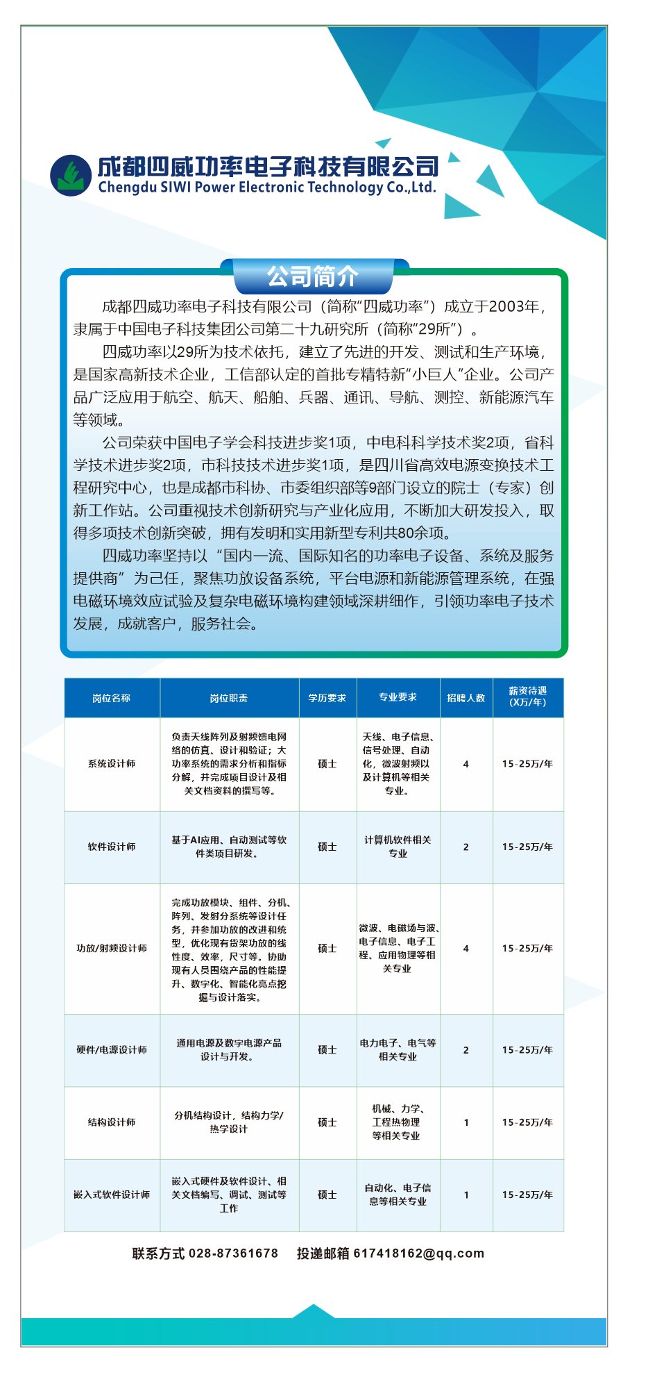 成都四威功率电子科技有限公司招聘