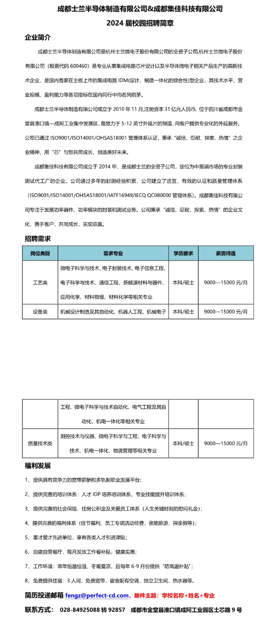 成都士兰半导体制造有限公司是杭州士兰微电子股份有限公司的全资子公司,杭州士兰微电子股份有限公司(股票代码600460)是专业从事集成电路芯片设计以及半导体微电子相关产品生产的高新技术企业,是国内首家在主板上市的集成电路IDM(设计、制造一体化的综合性)型企业,其技术水平、营业规模、盈利能力等各项指标在国内同行中均名列前茅。