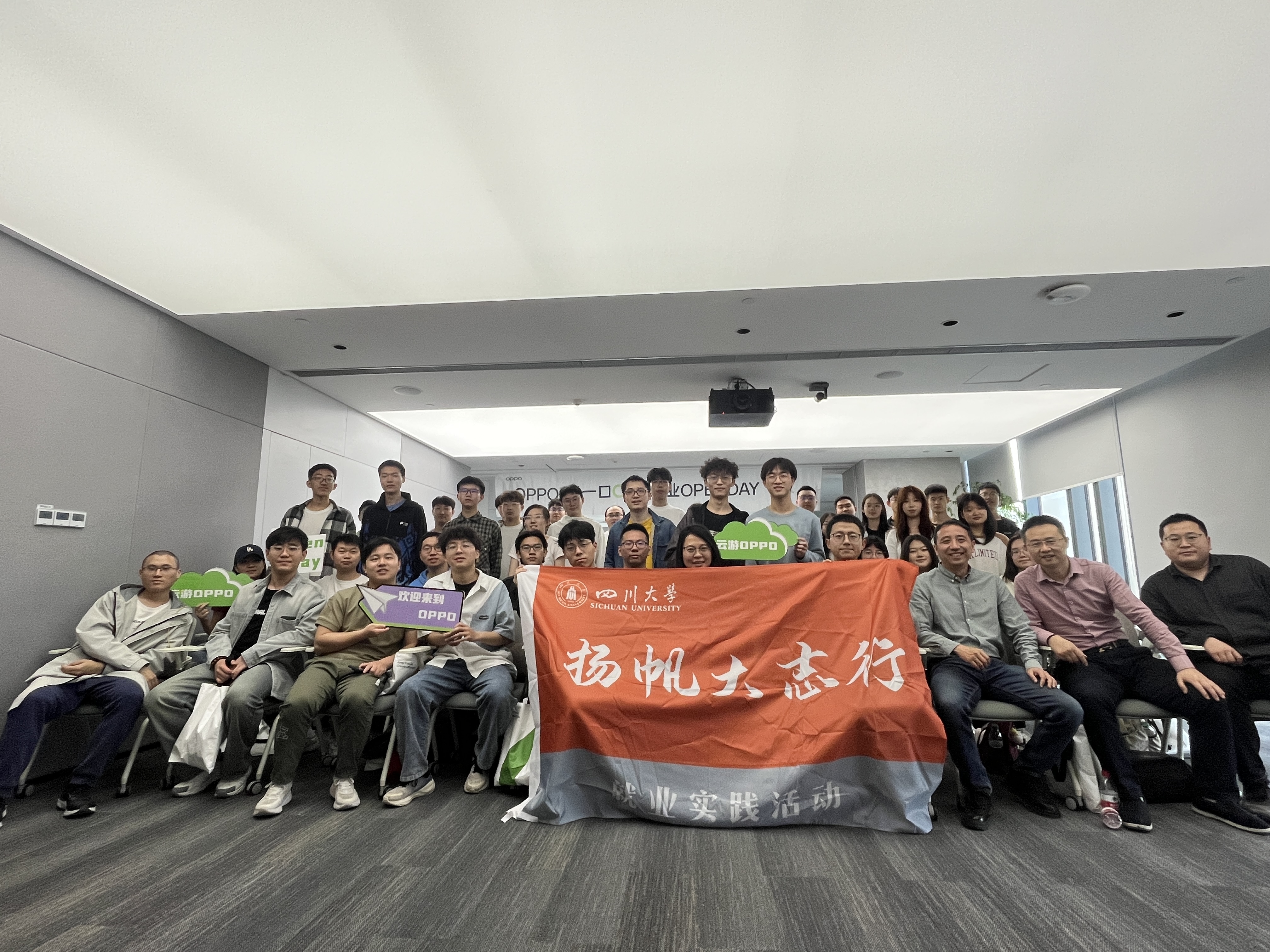 为了全面落实立德树人根本任务,促进校企合作,深化就业育人,教育引导学生“立大志、明大德、成大才、担大任”,积极响应学校“杨帆大志行”就业实践活动号召。我院于2025年4月11日组织学生实践团走访OPPO成都研发中心,开展“扬帆大志行”就业实践系列活动。院学生科科长兼就业专职岗谢老师、院团委副书记、23级本科辅导员申鑫老师和22级本科辅导员陈林老师,以及40余名研究生和本科生参加了本次活动。