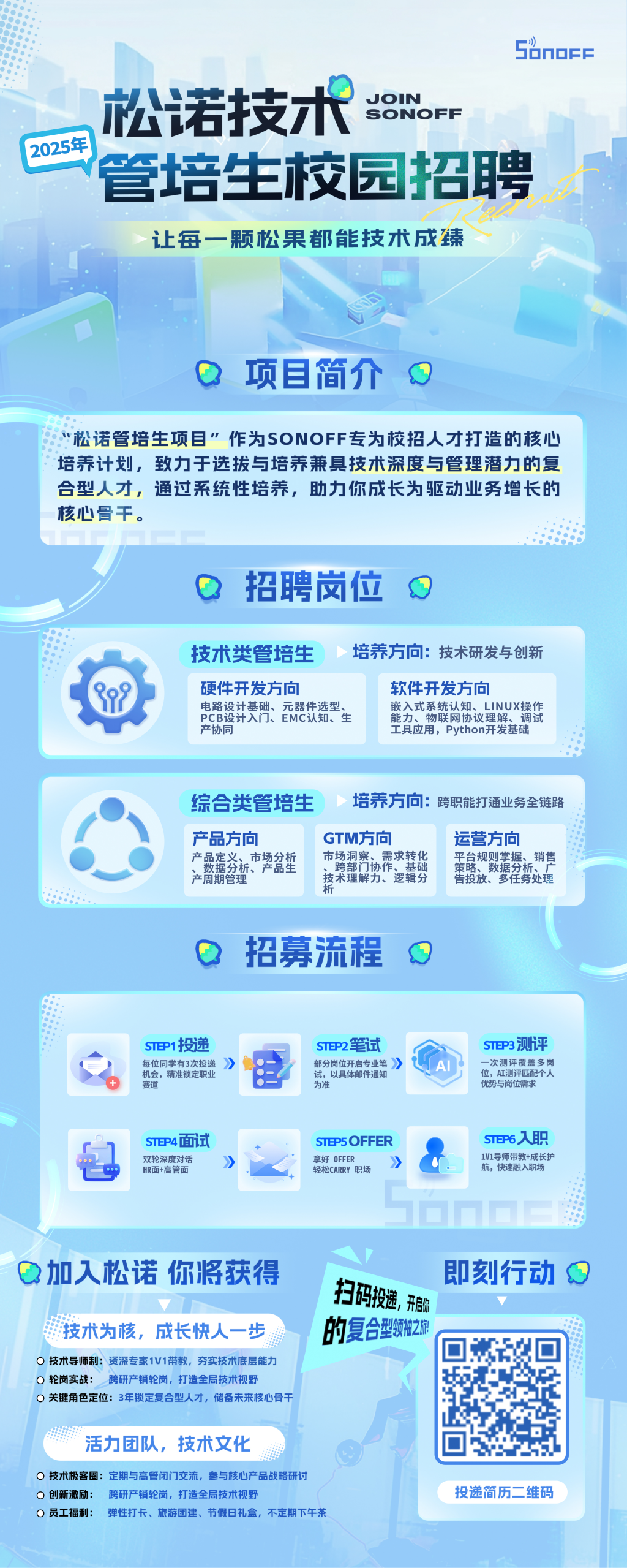 “松诺项目管培生计划”作为松诺技术专为校招人才打造的核心培养计划,致力于选拔与培养兼具技术深度与管理潜力的复合型人才,通过系统性培养,助力你成长为驱动业务增长的关键骨干,以卓越交付践行战略目标。