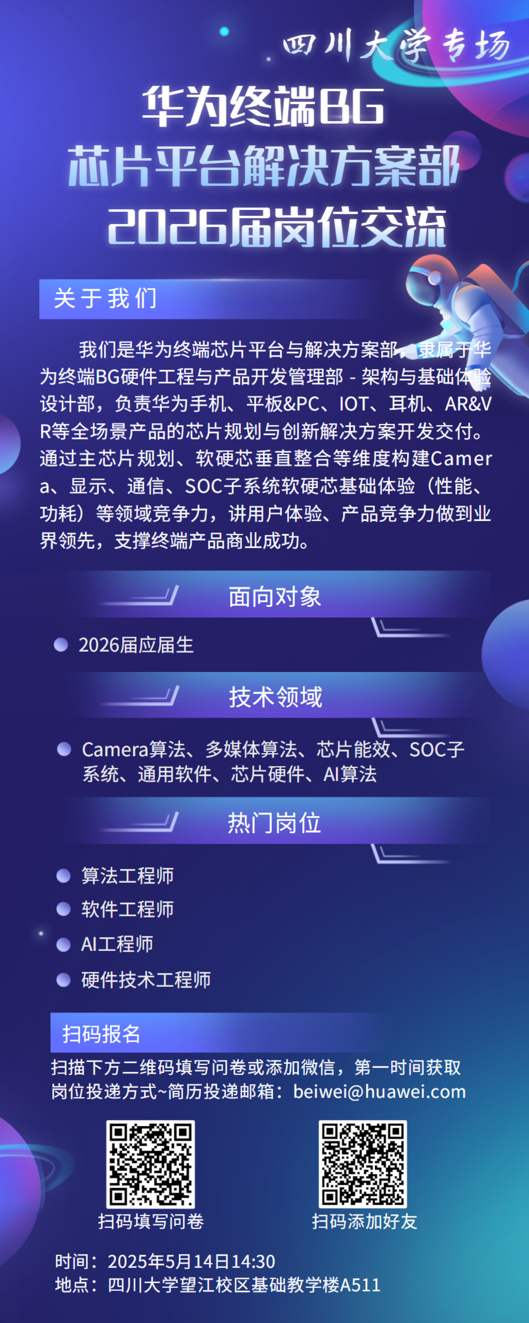 5月14日下午2:30基教A511华为终端芯片平台部26届招聘宣讲和职业发展交流