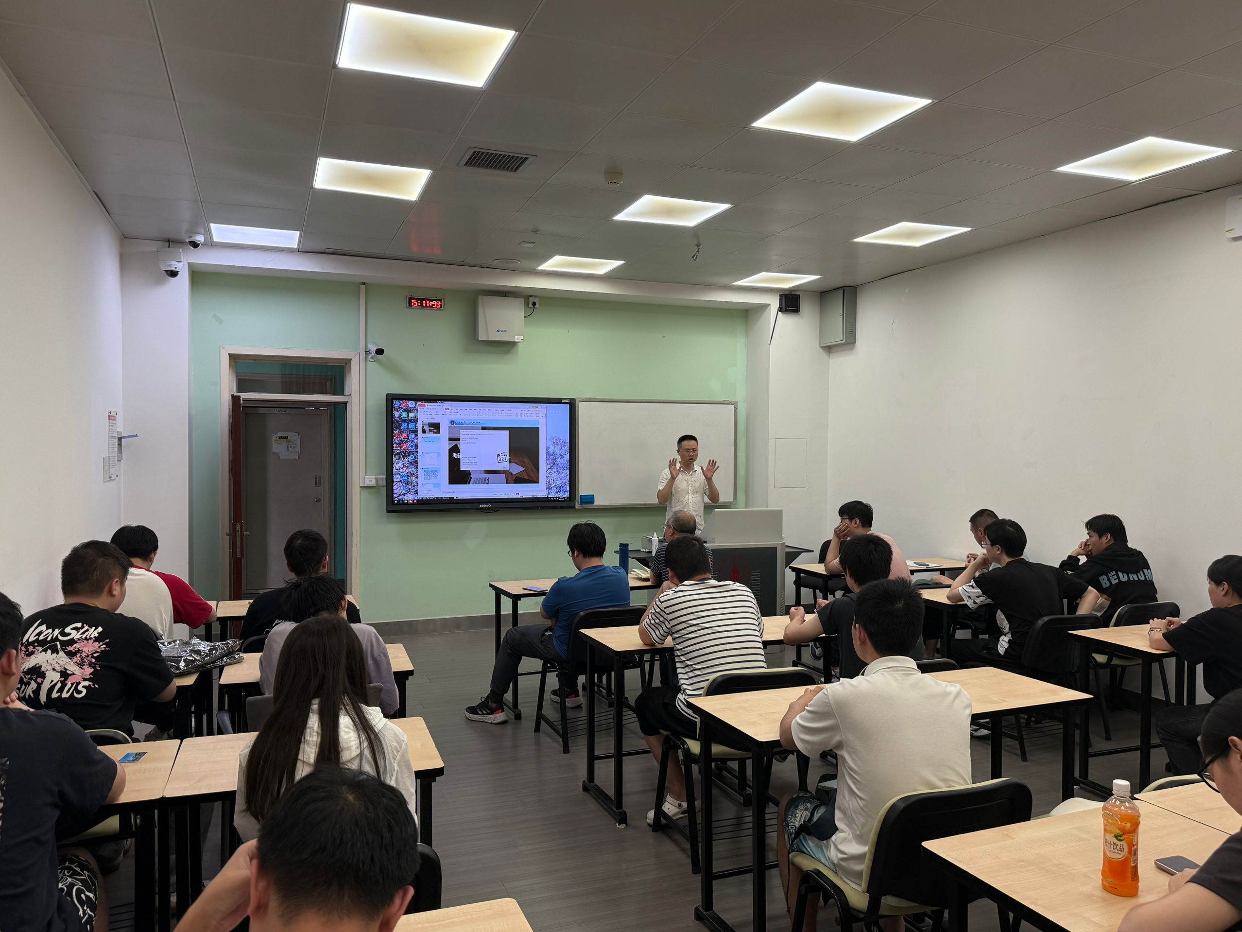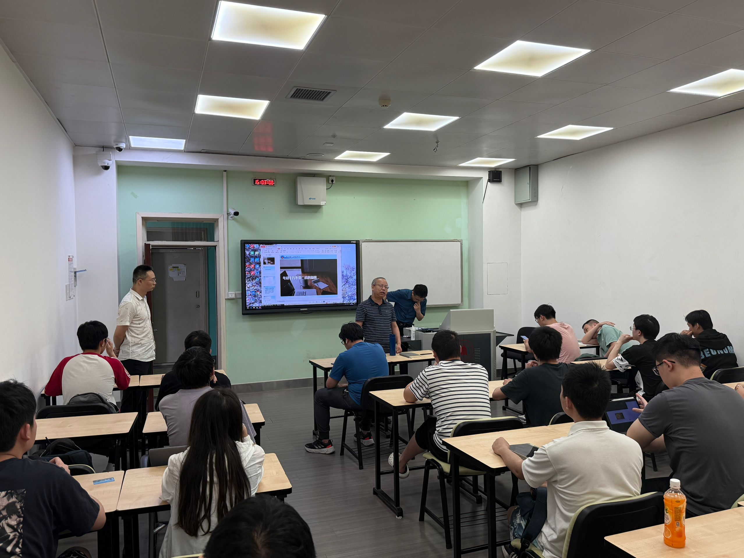 在基础教学楼A302教室召开了应届本科毕业生关于二战和就业的沟通会,本次会议参会老师有学院党委副书记兼纪委书记廖勇明,学生科长兼就业专职岗谢老师,21级本科年级辅导员孟老师,还有40多名同学参加了本次会议。