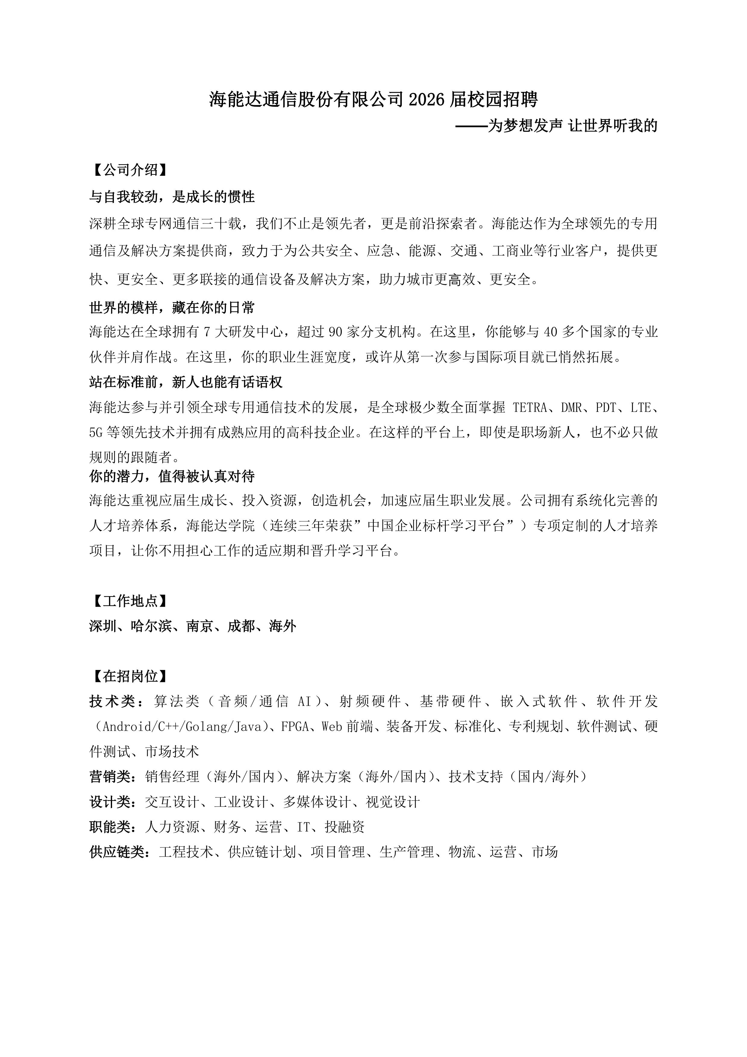 微信信息链接:为梦想发声!让世界听我的 | 海能达2026届校园招聘正式启动