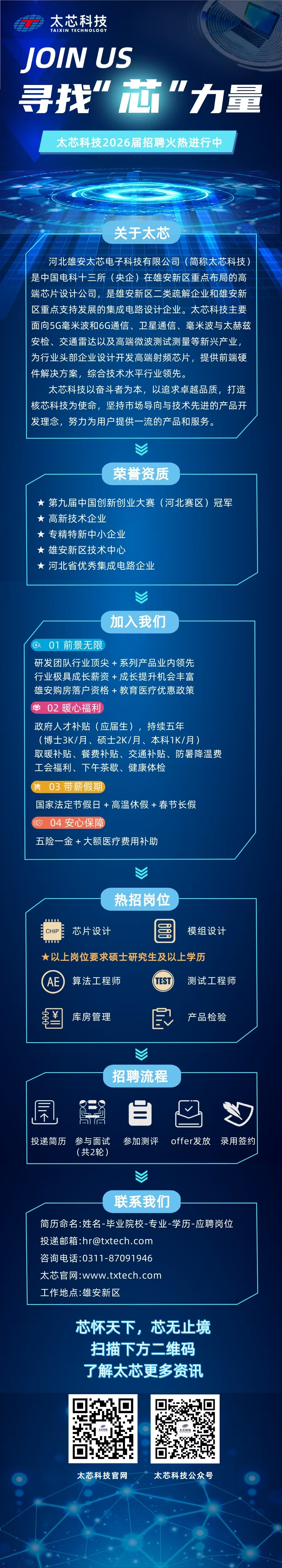 当前重点招聘的岗位为芯片设计、模组设计,电子信息类相关专业硕士毕业生及以上均可投递。