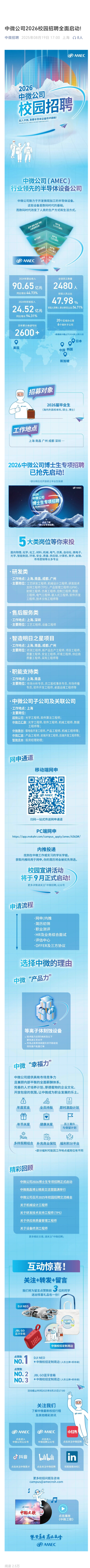 【招聘岗位】研发类、售后服务类、智造明日之星类、职能支持类、中微公司子公司及关联公司