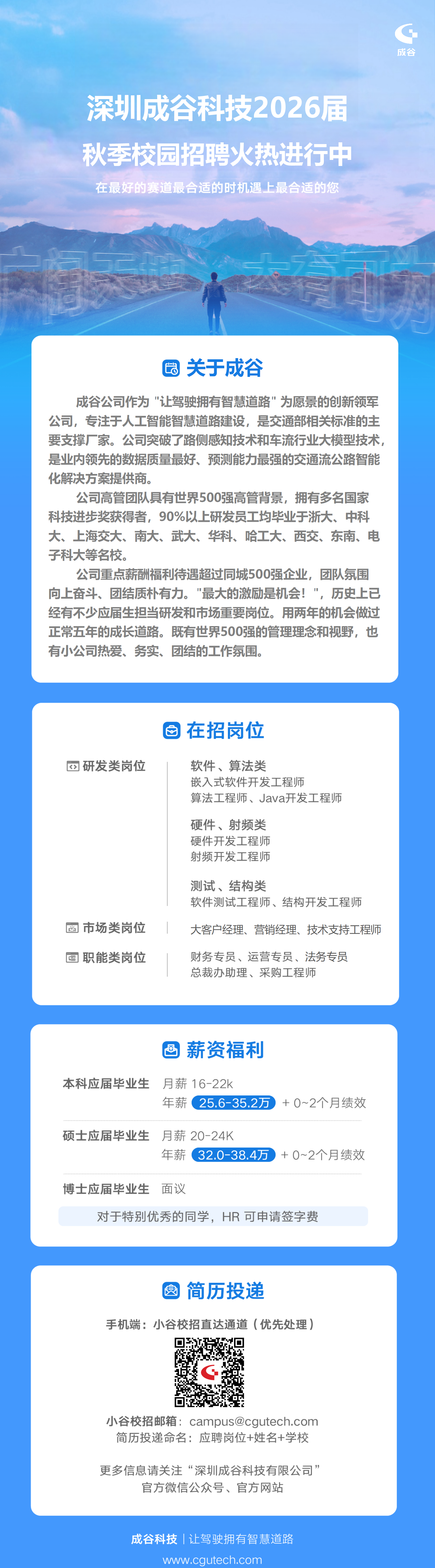 【成谷科技2026秋招火热进行中|硬核团队+顶配待遇,就等你来!】-特招