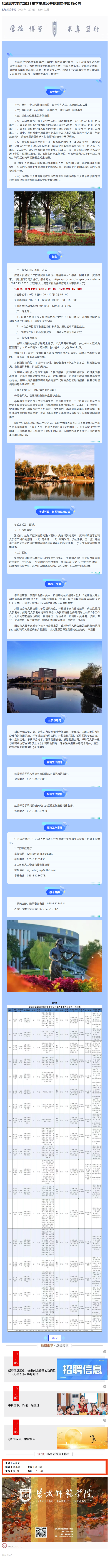 盐城师范学院2025年下半年公开招聘专任教师