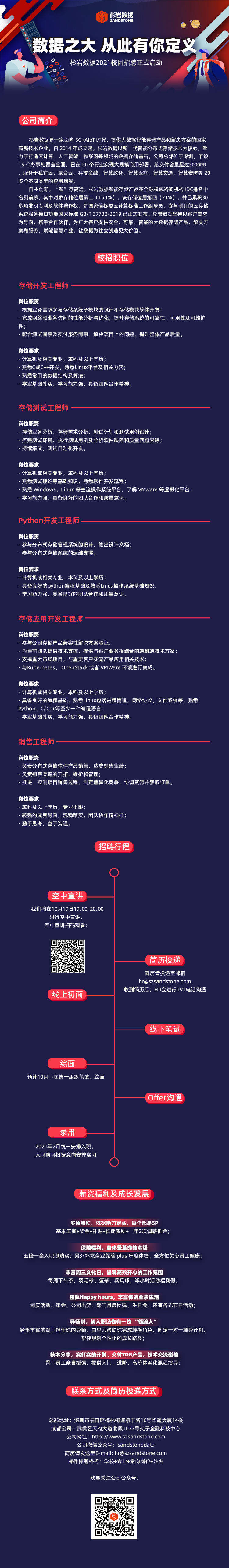 深圳市杉岩数据技术有限公司2021届校招岗位