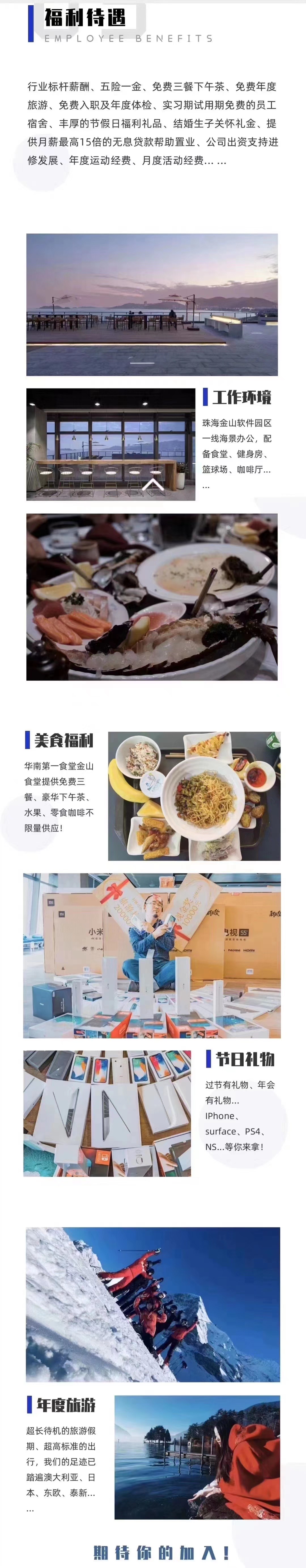 一线城市薪资,轻松工作环境,高额住房补贴,免费三餐食堂,暖心节日福利,志同道合游戏人,梦想与生活兼得~