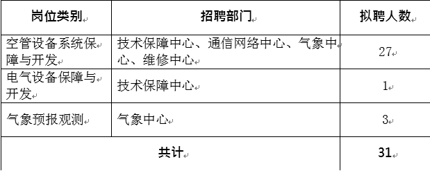 本次招聘部门为民航西南空管局技术保障中心、通信网络中 心、气象中心、维修中心。具体岗位类别与人数如下: