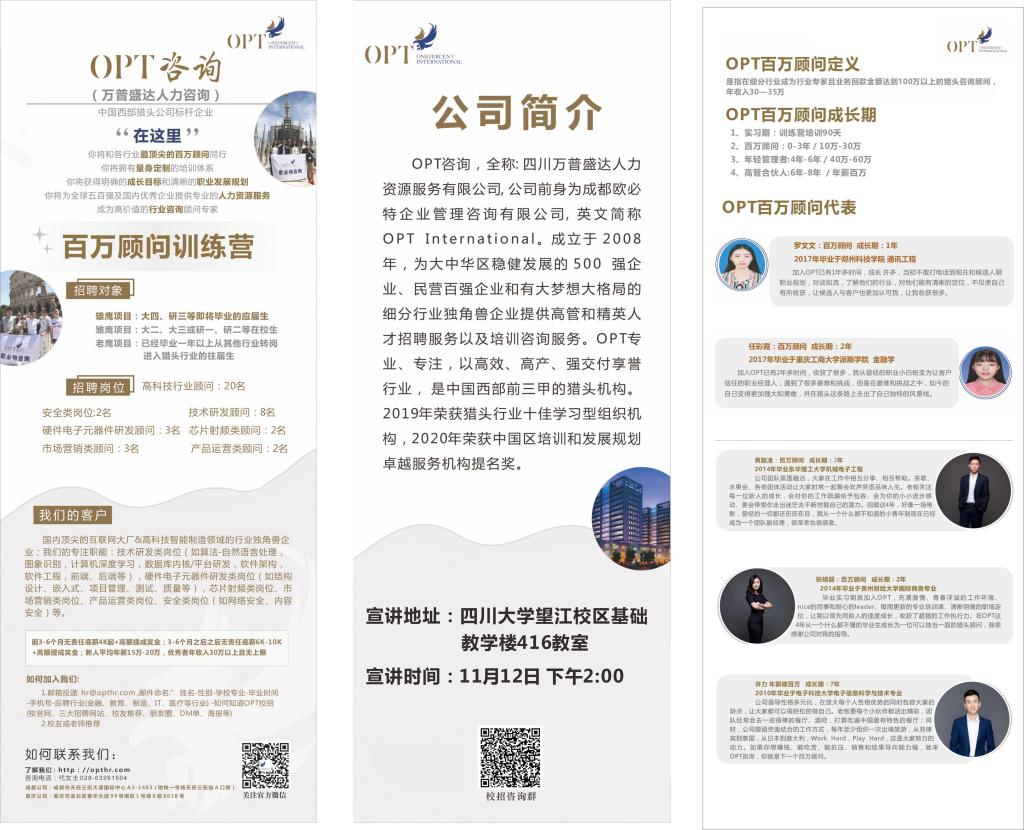 【OPT万普盛达-西部前三甲人力资源机构 校招】