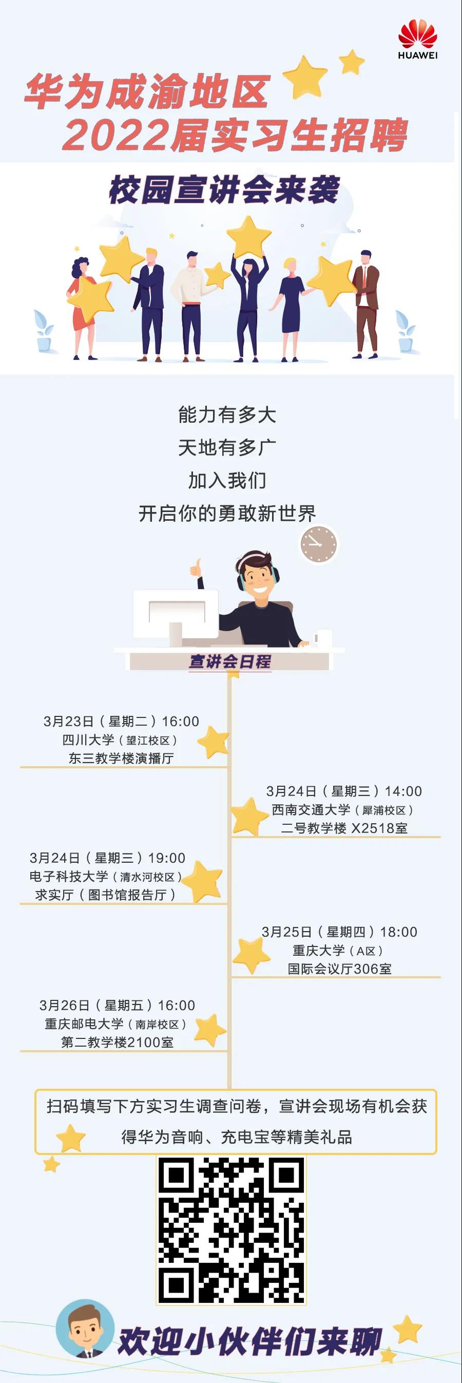 3月23日16点东三教学楼演播厅华为成渝地区2022届实习生招聘