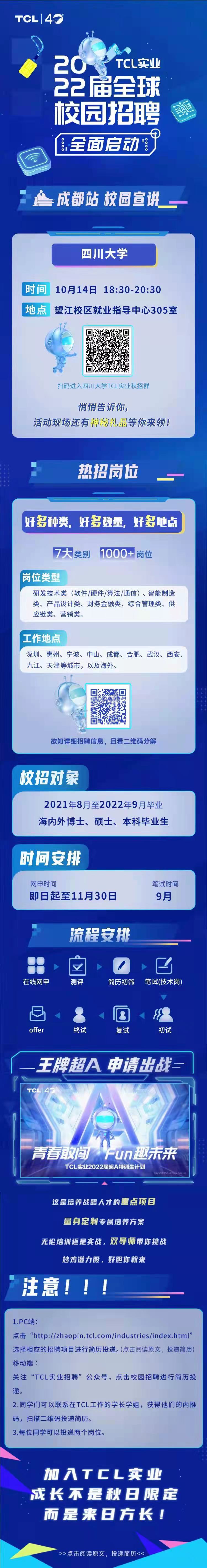 TCL实业 x 小欧视频 线下宣讲来啦!现场礼品丰厚等你来拿❗TCL智能手机钻石工艺美妆镜极简美学运动耳机 更有TCL实业 + 岗位需求等你 在这里,你想要的都有💯 『160+国家/地区』的国际化发展平台 『全业务链路』的轮岗机制 『一线城市 』福利机制 『超年轻』的工作氛围 『高管导师』手把手培养时间:10月14日18:30 - 20:30地点:望江校区就业指导中心305室