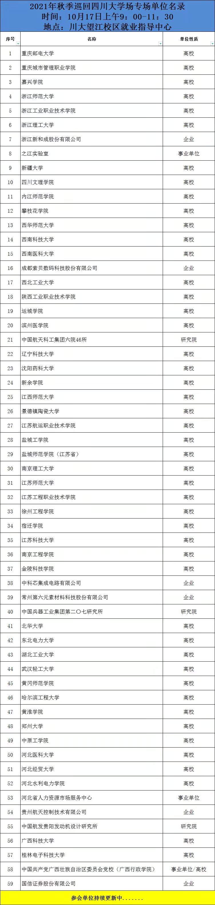 以下是最新参会单位名录,单位持续更新中,可以添加工作人员微信了解详情,祝各位同学都能顺利毕业,轻松择业。