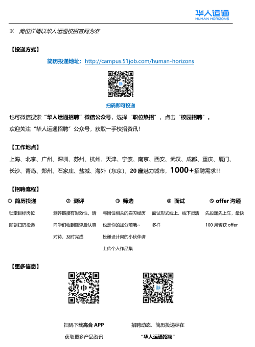 ※     岗位详情以华人运通校招官网为准