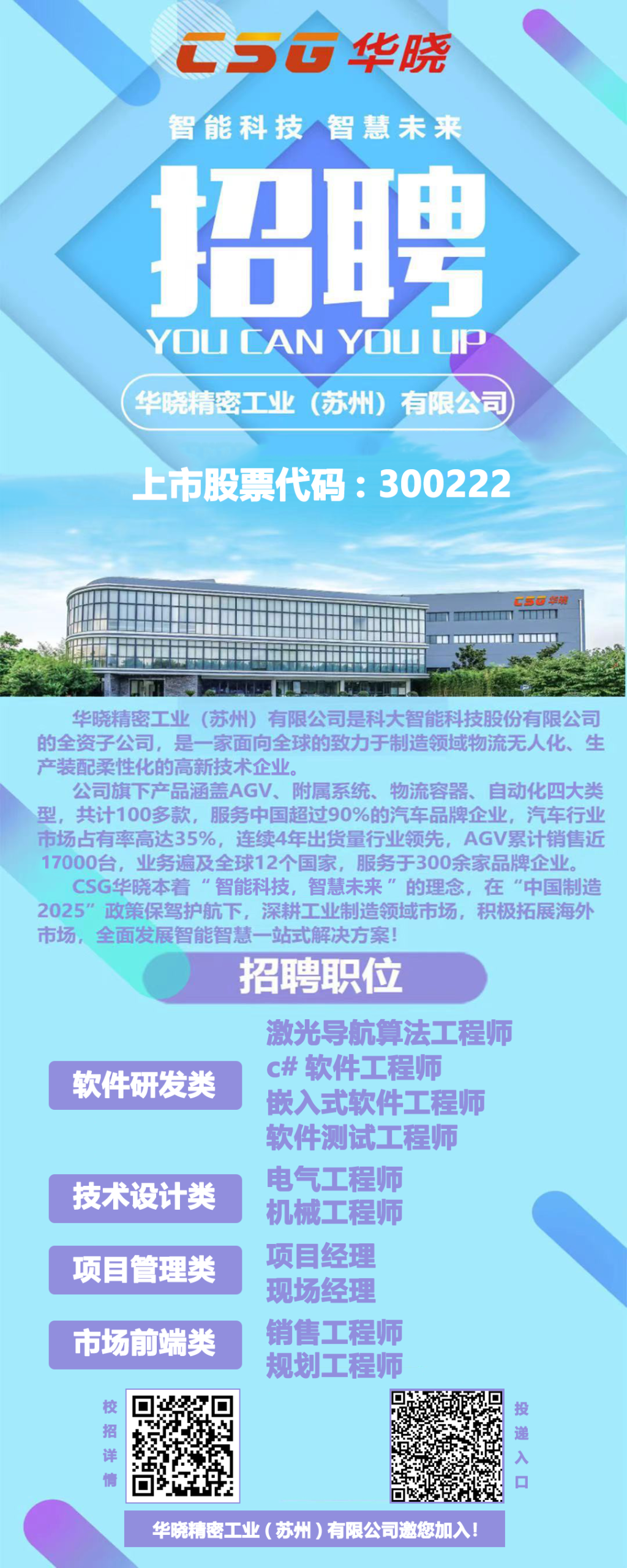 华晓精密工业(苏州)2022届小欧视频 校园招聘火热进行中!空中宣讲时间:10月28日 上午10:00点击链接入会 //meeting.tencent.com/dm/QSHiuN5R3oQD或腾讯会议→加入会议→输入会议 ID:542 498 555️职能、技术岗位等14个岗位需求,诚邀同学们前来应聘️核心技术类岗位年薪可达20W+人事电话/微信:17596540824