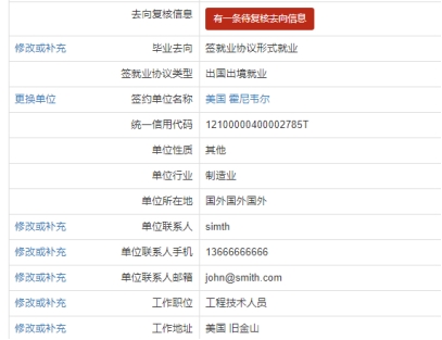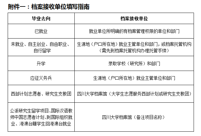 3、国外升学的同学,有高校录取通知书后马上填写就业去向,并上传录取通知书。出国升学的同学,派遣、档案、户口一般回原籍,自己电话联系生源地的市区县人才中心(一般可以百度到相关电话)填写,特殊的也可自己联系愿接受的地方(比如留成都,参考本文就业相关)。