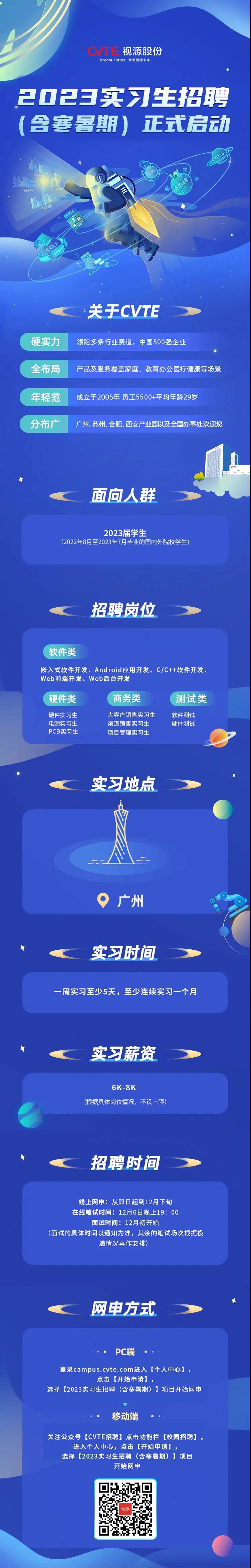 📨【一键投递】 进入官网campus.cvte.com 选择〔2023实习生招聘(含寒暑期)〕网申,了解更多岗位详情~